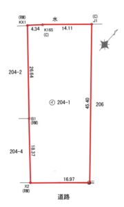 - 北西側幅員約6.0m市道に約4.34m接面